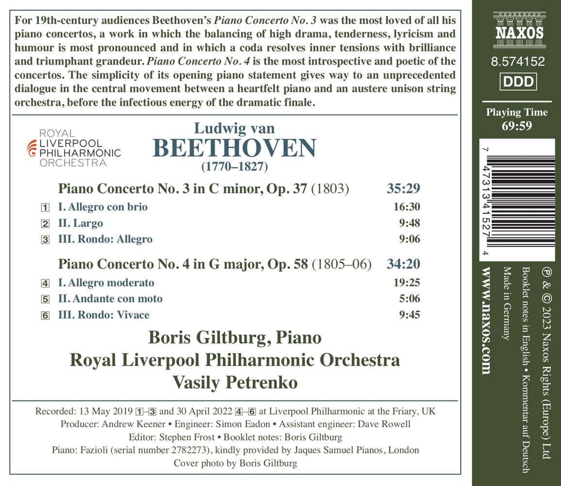 For 19th-century audiences Beethoven's Piano Concerto No. 3 was the most loved of all his piano concertos, a work in which the balancing of high drama, tenderness, lyricism and humour is most pronounced and in which a coda resolves inner tensions with brilliance and triumphant grandeur. Piano Concerto No. 4 is the most introspective and poetic of the concertos. The simplicity of its opening piano statement gives way to an unprecedented dialogue in the central movement between a heartfelt piano and an austere unison string orchestra, before the infectious energy of the dramatic finale.
