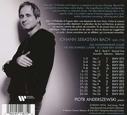 Piotr Anderszewski takes a characteristically creative approach to Bach’s Das Wohltemperierte Klavier (The Well-tempered Clavier). Rather than recording all 48 of its prelude-and-fugue pairings, he has focused on 12 pairings from Book Two. “I decided to put the pieces together in a sequence of my own subjective choosing, based sometimes on key relationships, at other times on contrasts. The idea behind this specific order is to create a sense of drama that suggests a cycle: 12 characters conversing with one another, mirroring each other.” Anderszewski’s last Erato album of Bach prompted BBC Music Magazine to write: “For anyone who loves Bach (or the piano) … this life-enhancing disc is required listening.