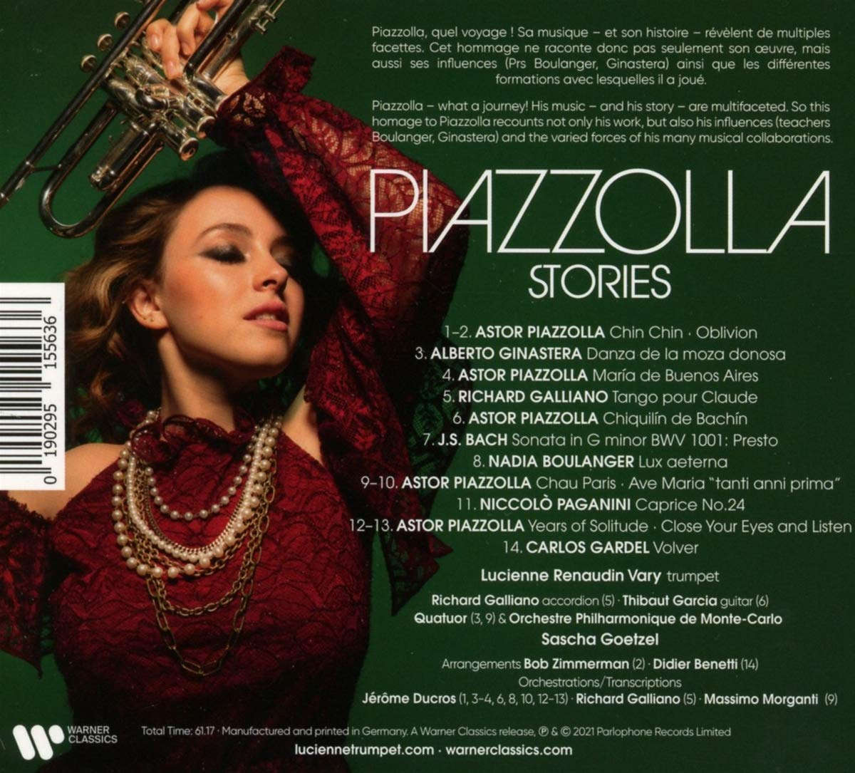 “Piazzolla – what a journey! His music has so many sides to it. Throughout his life he was exposed to such a rich and varied stream of influences. This homage to Piazzolla, while of course including compositions by him, also references those influences (here I’m thinking of Nadia Boulanger and Alberto Ginastera, with whom he studied). Piazzolla’s output is rich not only in terms of the styles he explored but also the different instrumental ensembles he played with. I was keen to reflect this eclecticism by way of a number of different line-ups: trumpet solo, with orchestra, with string quartet, and as duet partner.” (…) I would also like to thank my two guest artists: Thibaut Garcia, for his wonderful guitar playing and his friendship and the great Richard Galliano for being with us. It was very moving to perform his Tango pour Claude alongside him.