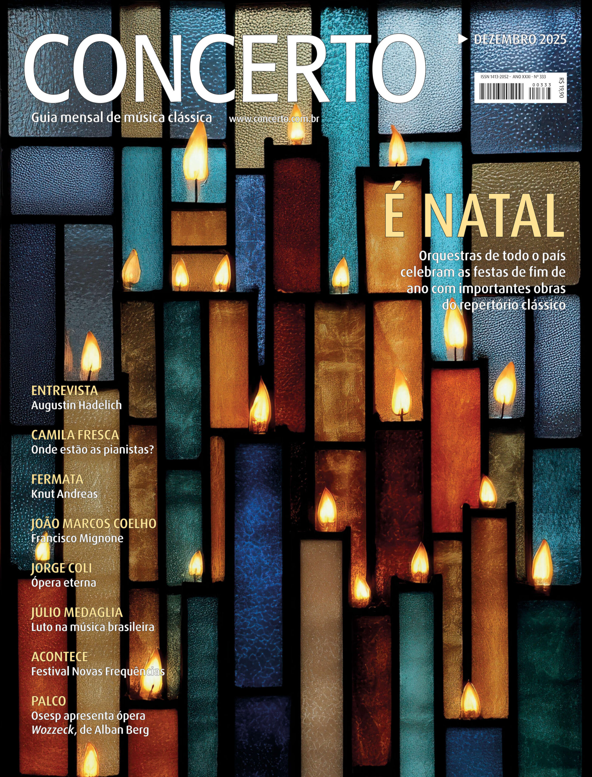esta é a edição de dezembro da Revista CONCERTO, o guia da música clássica no Brasil. A reportagem de capa, assinada pelo editor executivo João Luiz Sampaio, destaca importantes repertórios natalinos que serão interpretados neste mês. Entre obras mais tradicionais como O quebra-nozes de Tchaikovsky – que será apresentada no Theatro Municipal do Rio de Janeiro, pela Orquestra Sinfônica do Teatro Nacional Claudio Santoro e pela Cisne Negro Cia. de Dança –, há também peças menos conhecidas, como as composições de Johann Heinrich Rolle (1716-85), a serem tocadas pela Camerata Antiqua de Curitiba.